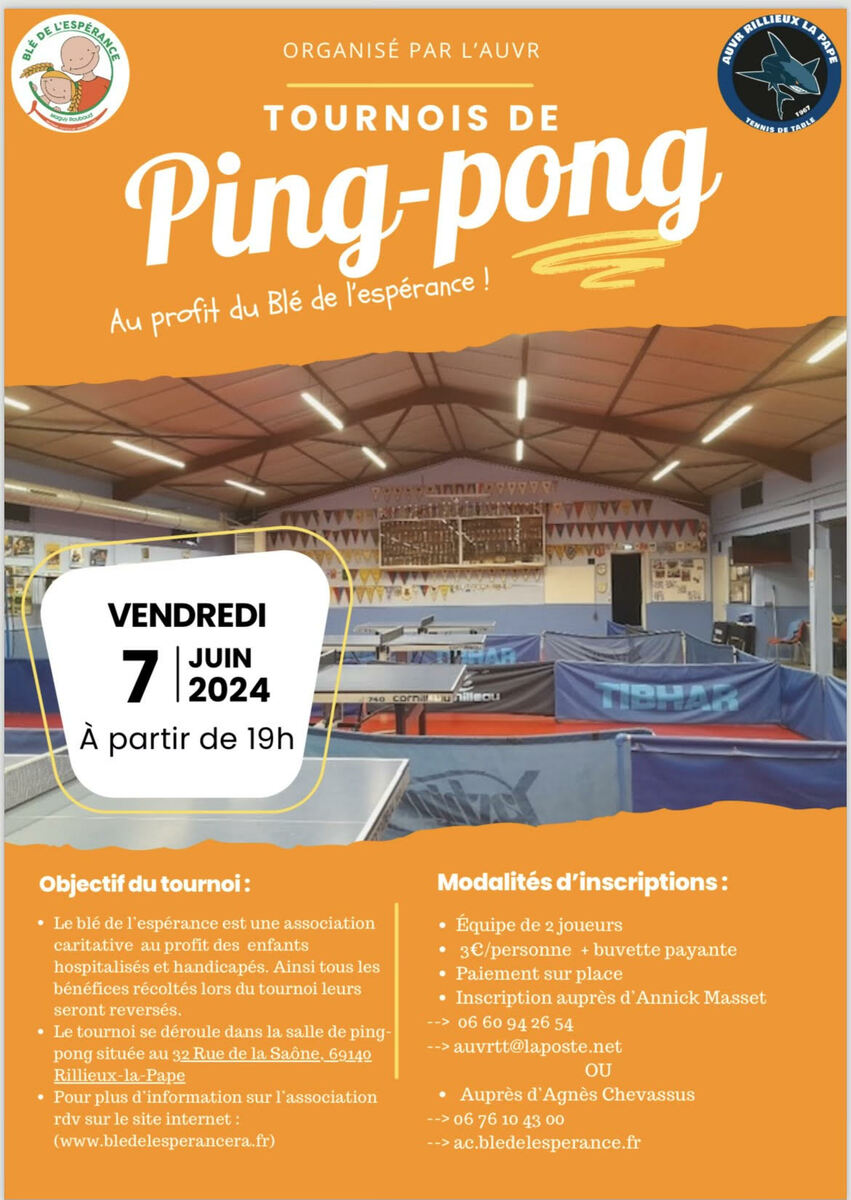 Le blé de l'espérance est une association caritative au profit des enfants hosptitalisés et handicapés. Ainsi tous les bénéfices récoltés lors du tournoi leurs seront réservés.