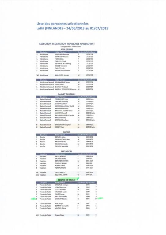 HANDISPORT : Julien en équipe de France Espoirs