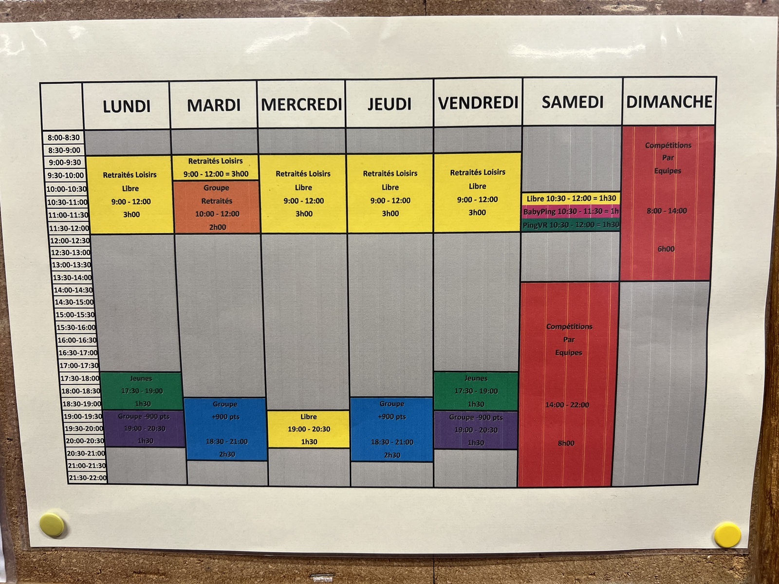 Voici les horaires d'entraînements pour la saison 2024-2025. (ci-joint la photo) La reprise des entraînements dirigés sera à partir du lundi 9 septembre.